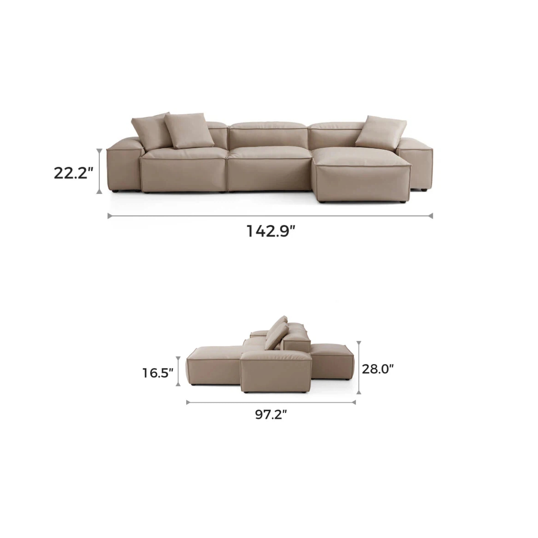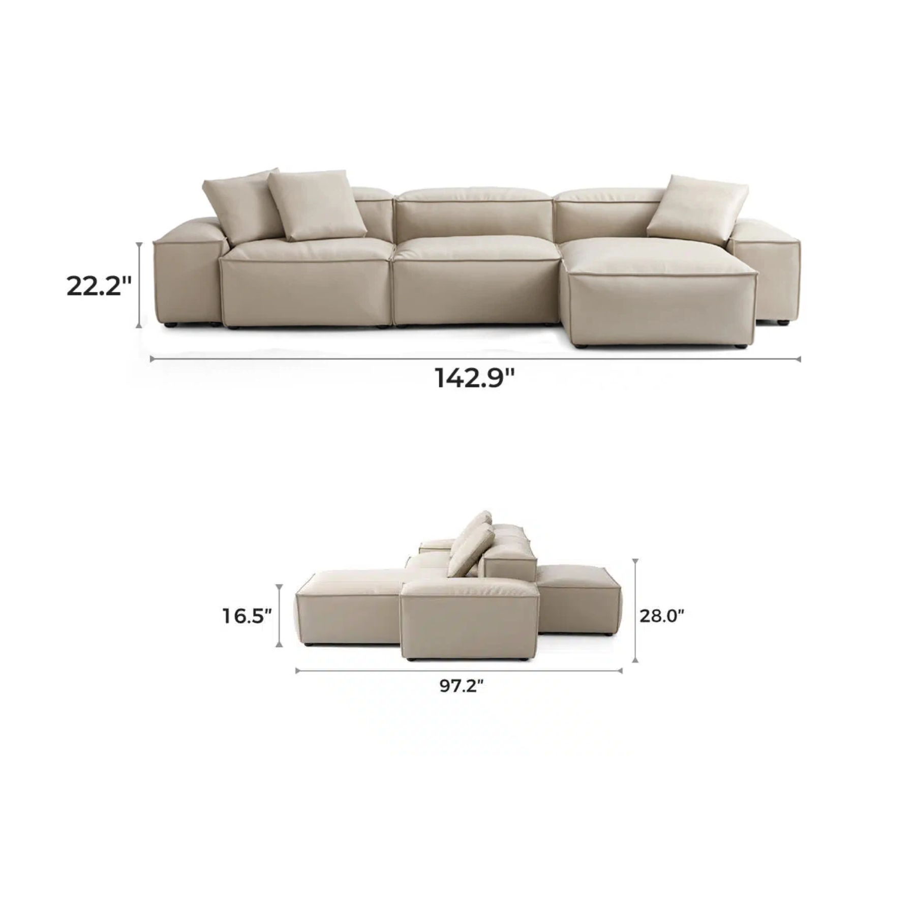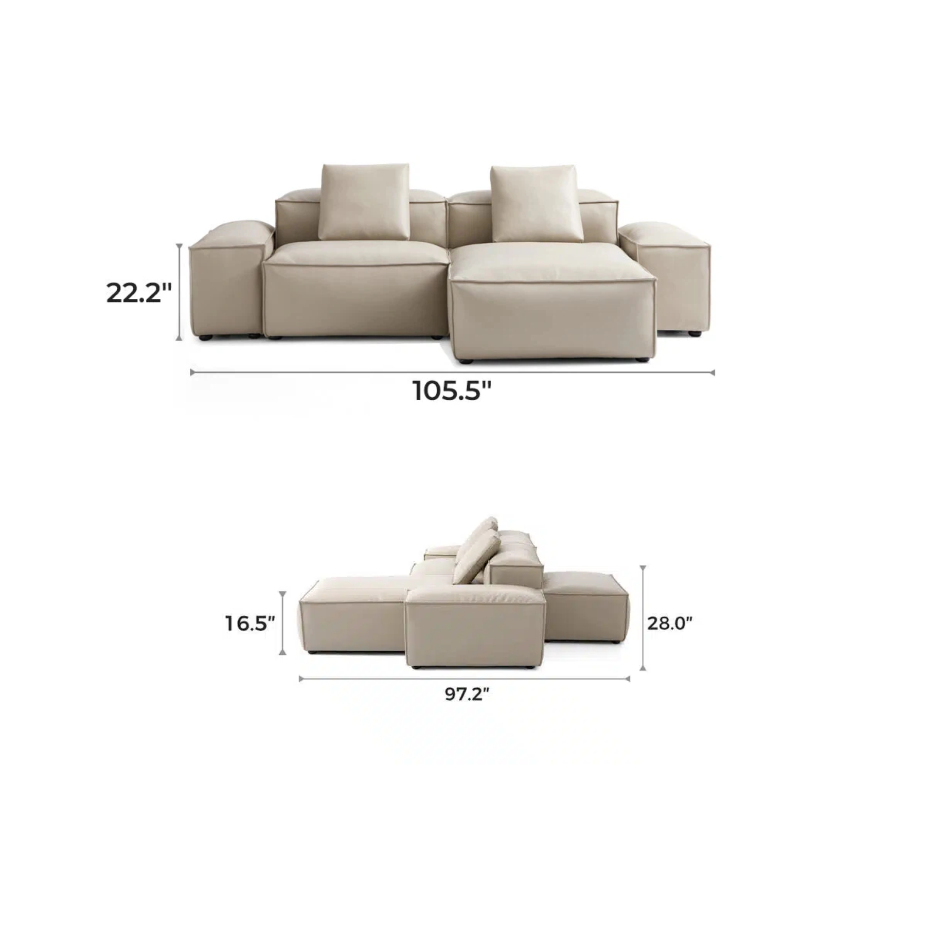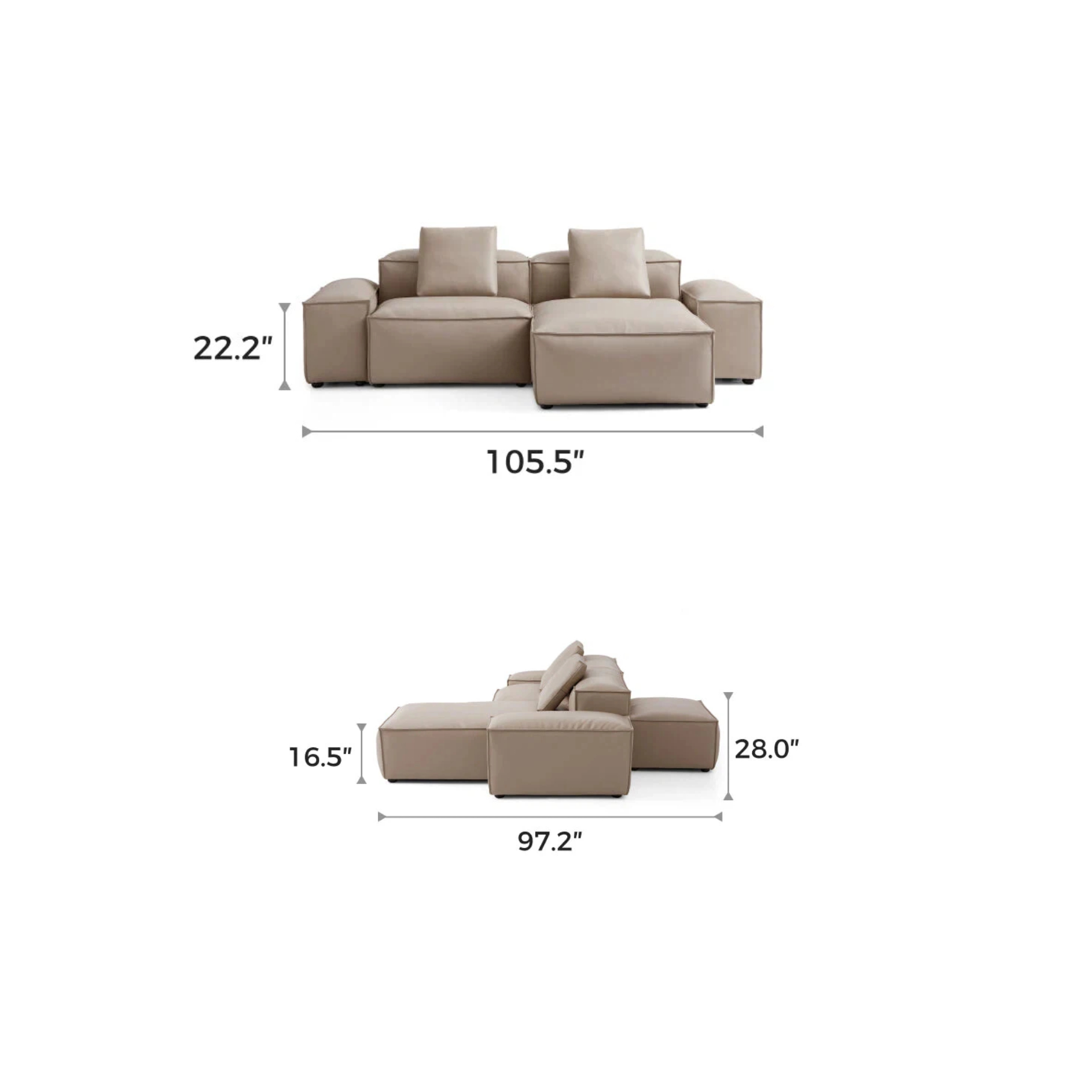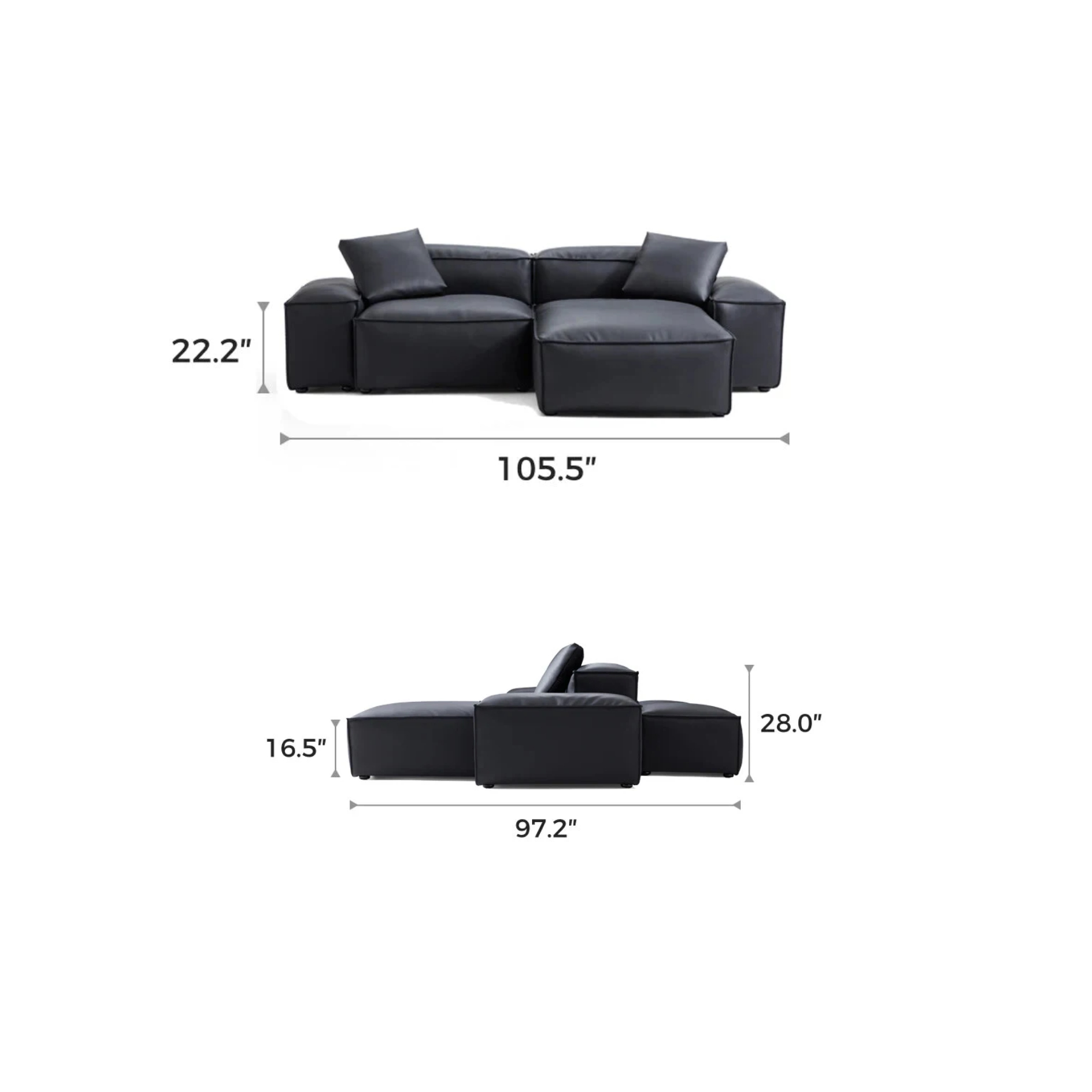 General Dimensions  105.5″ L × 97.2″ W × 28″ H