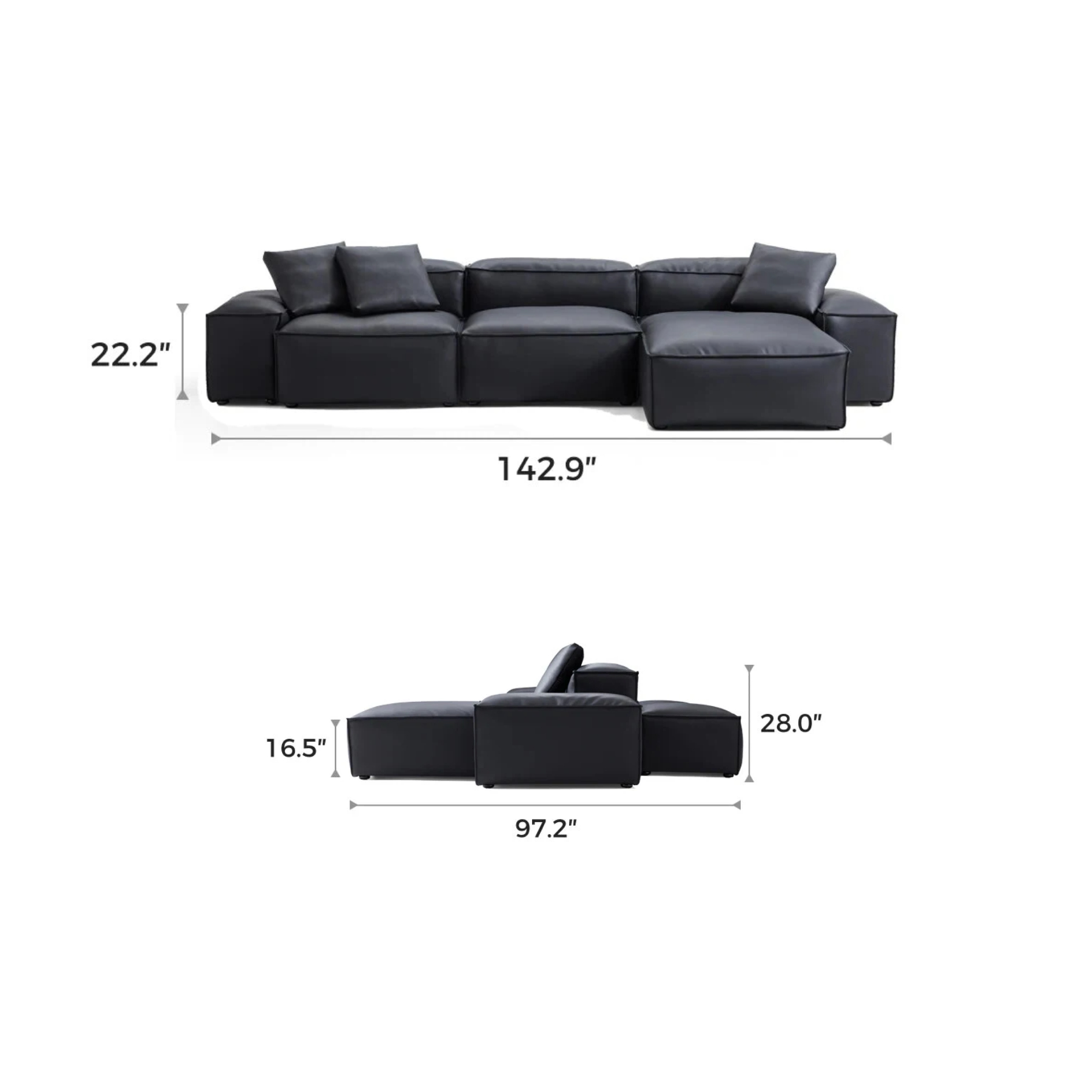 Cube Modular Black Genuine Leather Double-Sided Sectional
