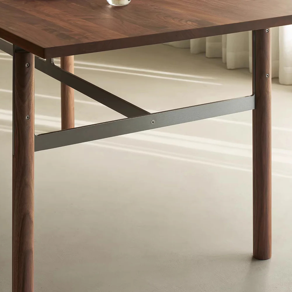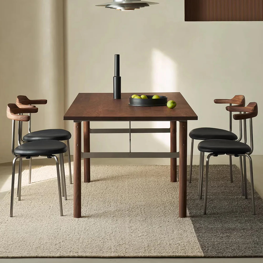 A study in restrained modern minimalism, the Abbott Rectangular Dining Table balances rational design with subtle emotion. Warm solid wood meets elegant industrial elements, creating a dining table that feels calm, inviting, and quietly sophisticated.