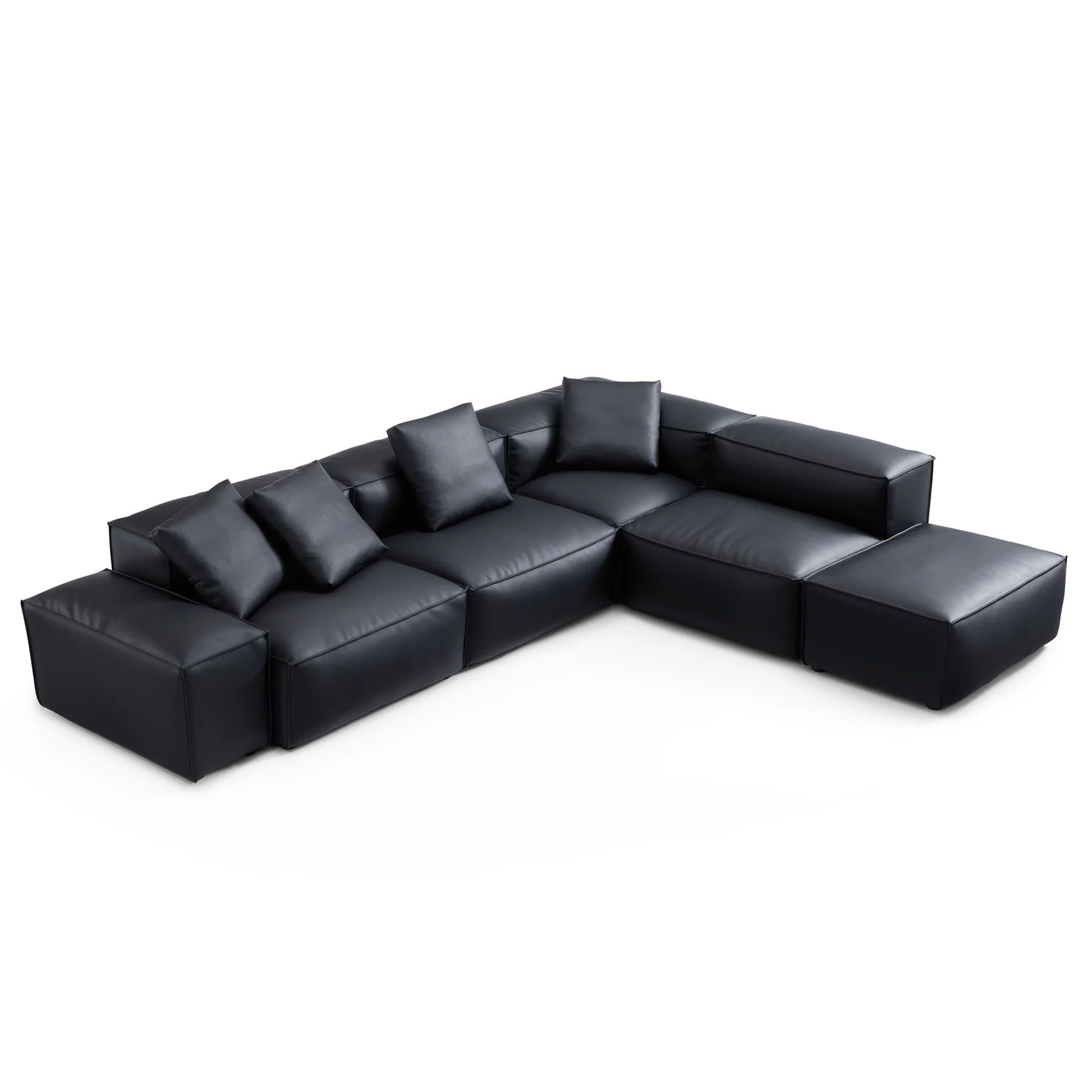 Cube Modular Black Genuine Leather Corner Sectional With Ottoman