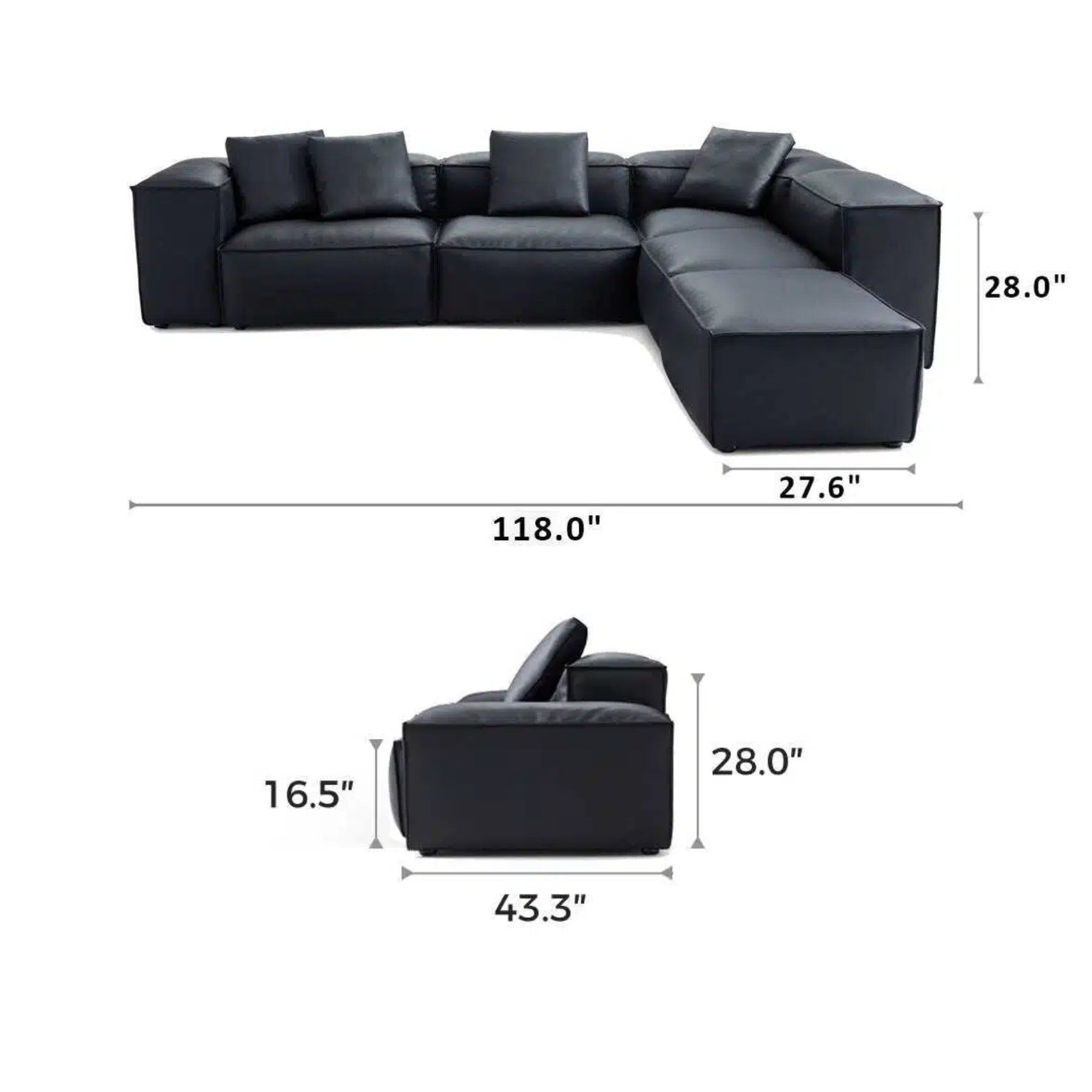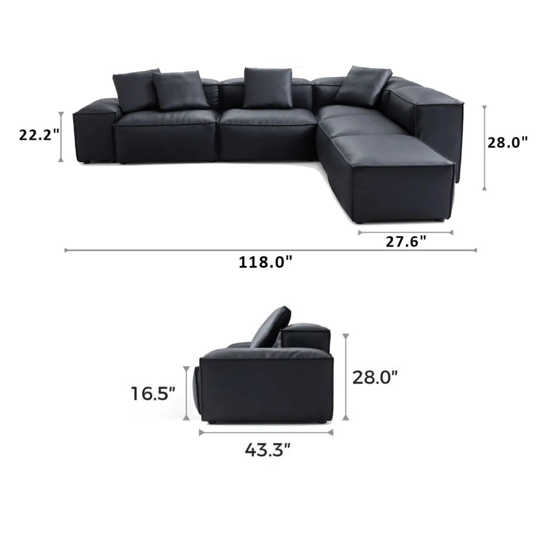General Dimensions  118.0″ L × 43.3″ W × 28″ H