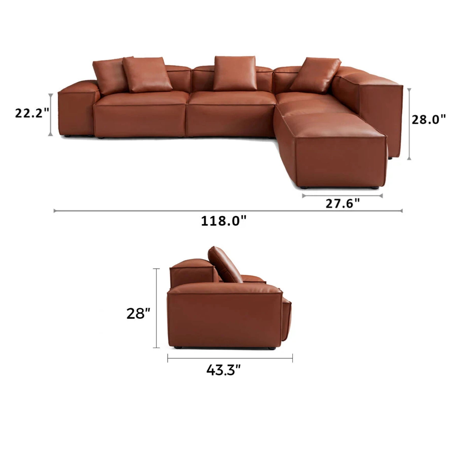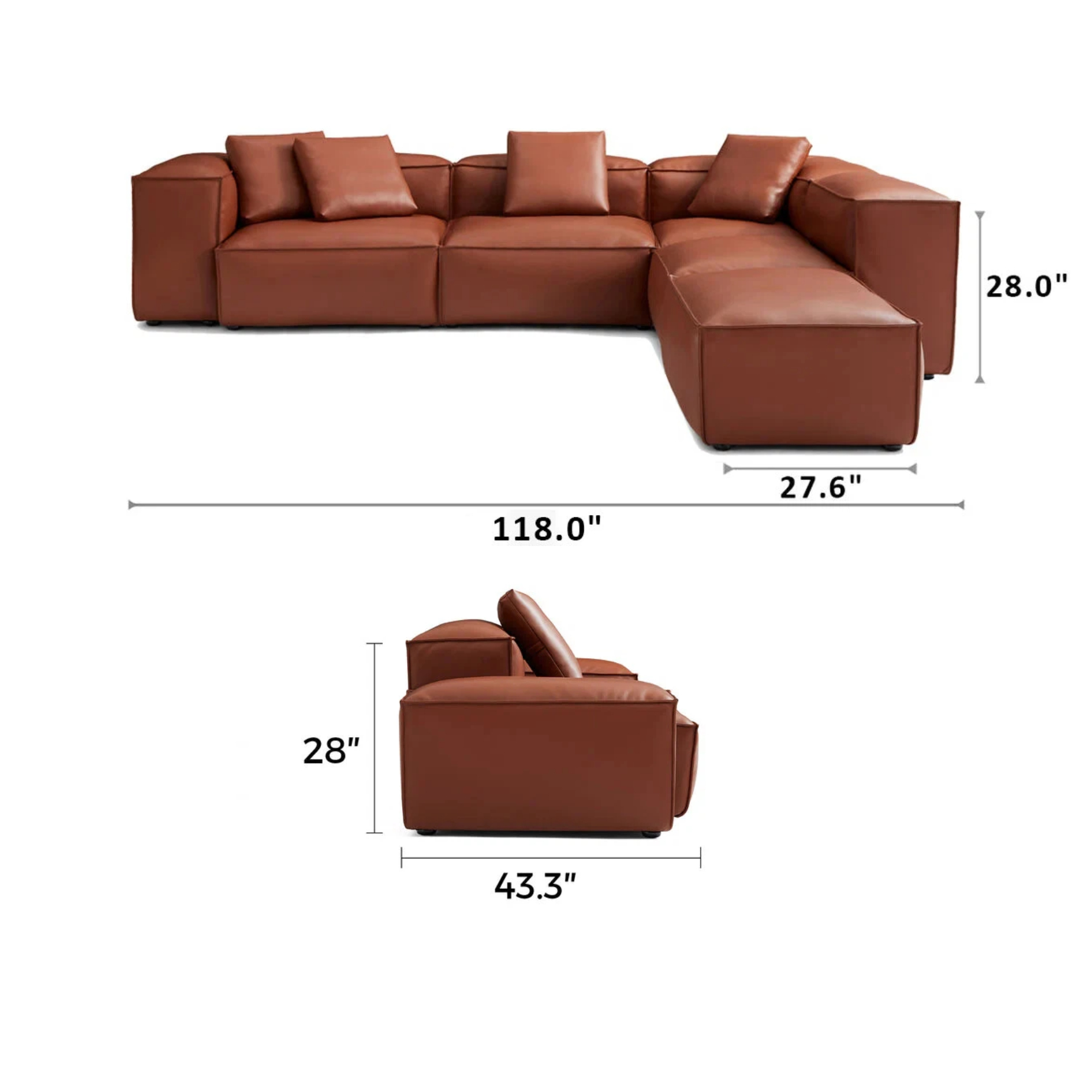 Cube Modular Brown Genuine Leather Corner Sectional With Ottoman