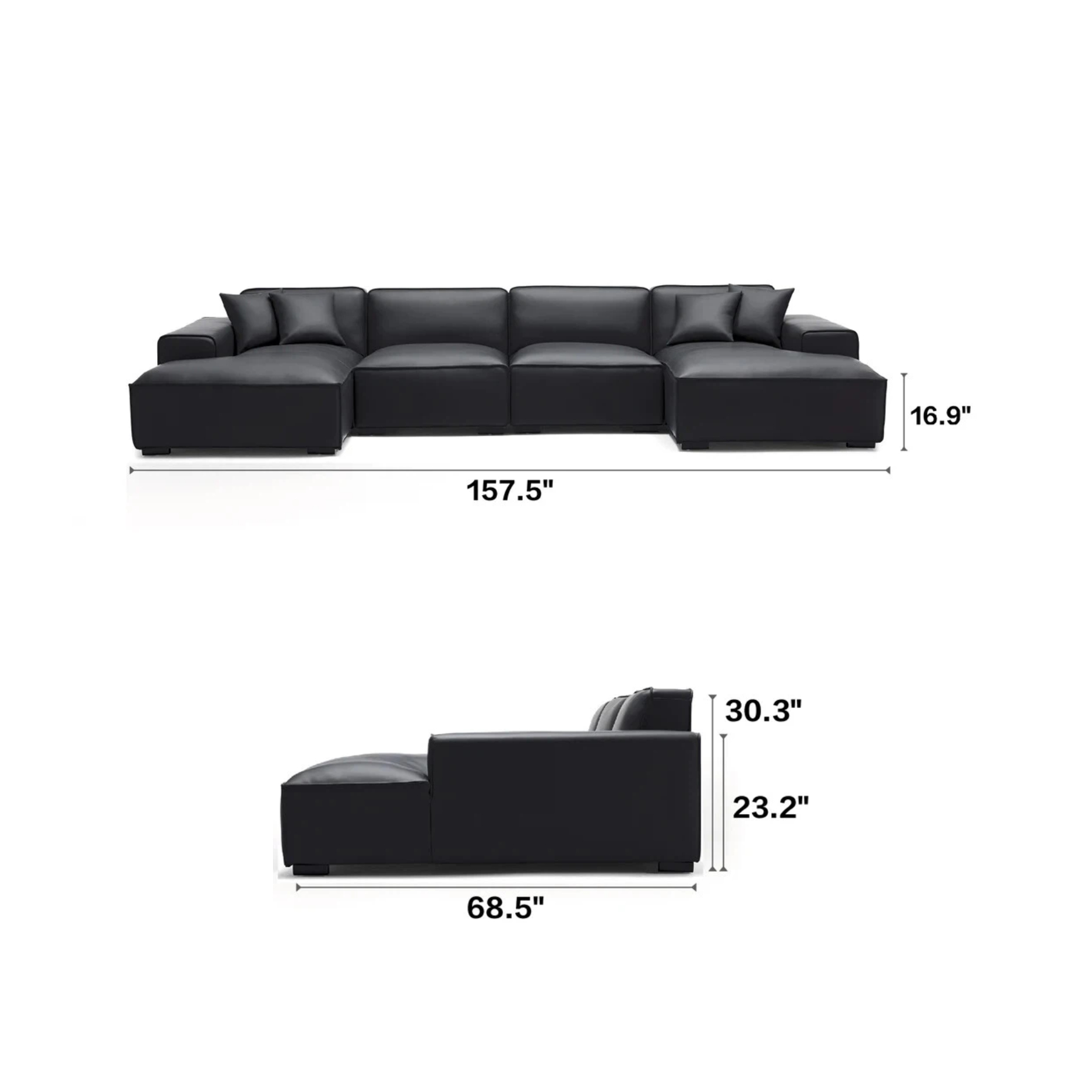 Domus Modular Dark Gray Leather U-Shaped Sectional Sofa