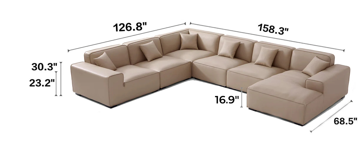 Domus Modular Dark Gray Leather U-Shaped Sectional Sofa