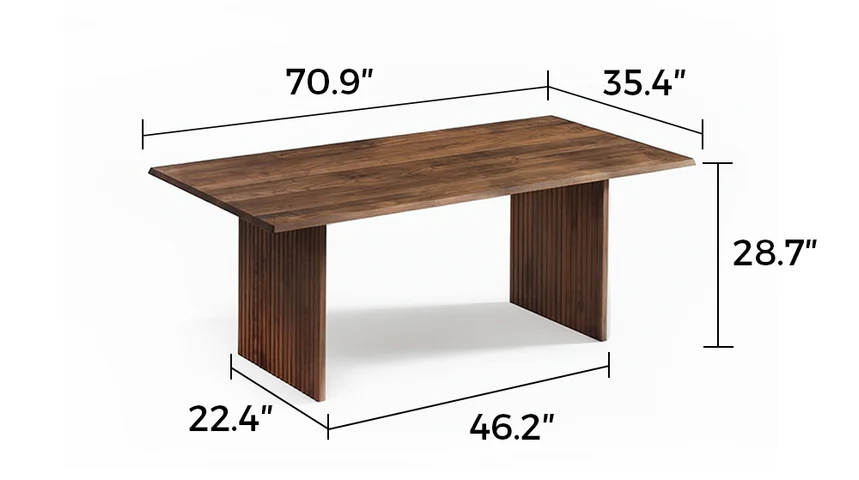 The Dovelina Rectangular Dining Table blends timeless craftsmanship with architectural inspiration. Made from solid walnut wood, it features sculpted fluted legs, expressive natural grain, and a clean rectangular silhouette that suits modern, mid-century, and contemporary dining rooms. Finished with an eco-friendly clear coat and equipped with adjustable feet, Dovelina offers beauty, durability, and everyday comfort in one refined design.