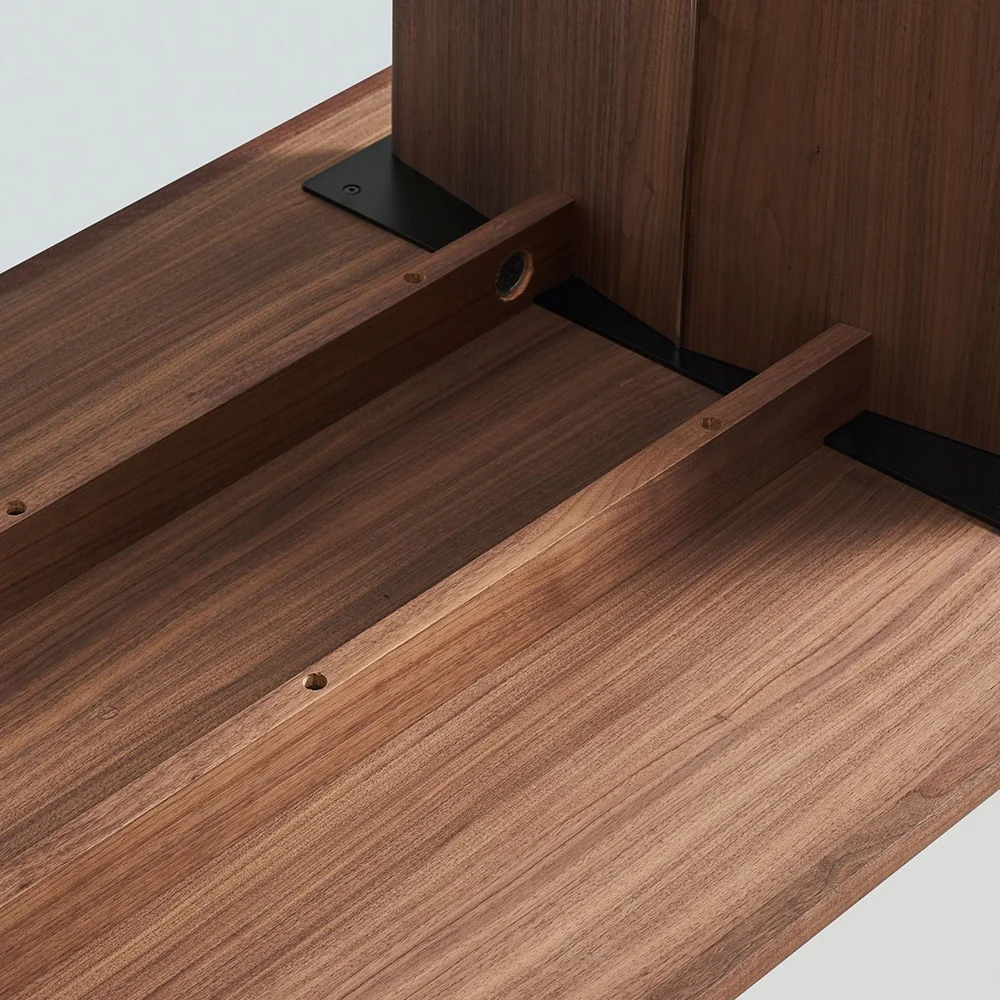 The base is fully wrapped in black walnut veneer, ensuring a consistent, premium finish from every angle. This detail reflects a commitment to quality craftsmanship and a smooth, tactile experience.