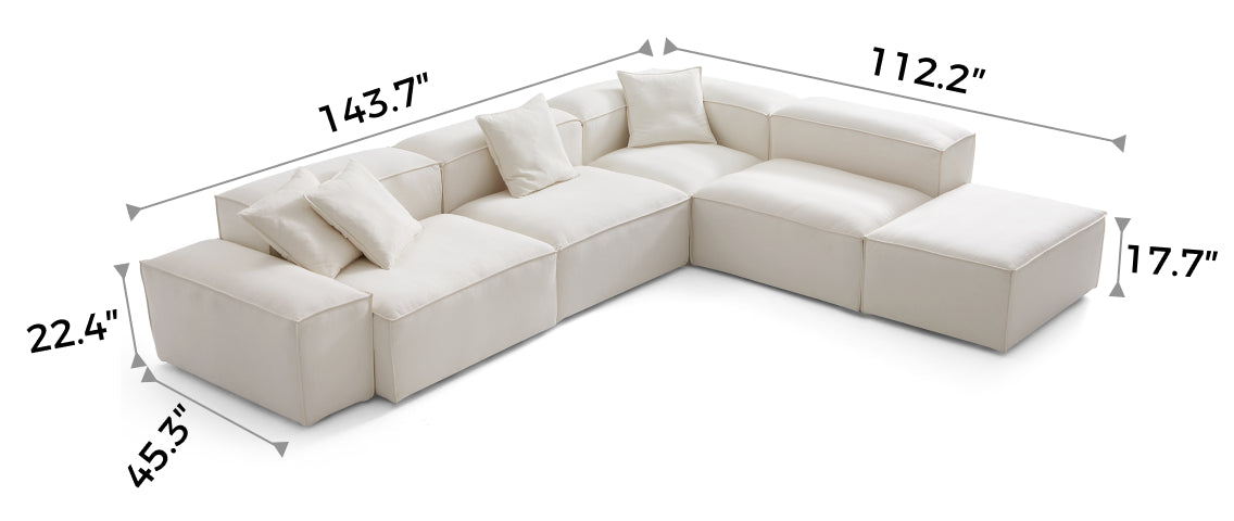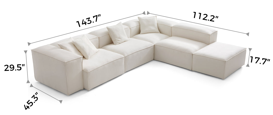 Modular Beige L-Shaped Sectional and Ottoman
