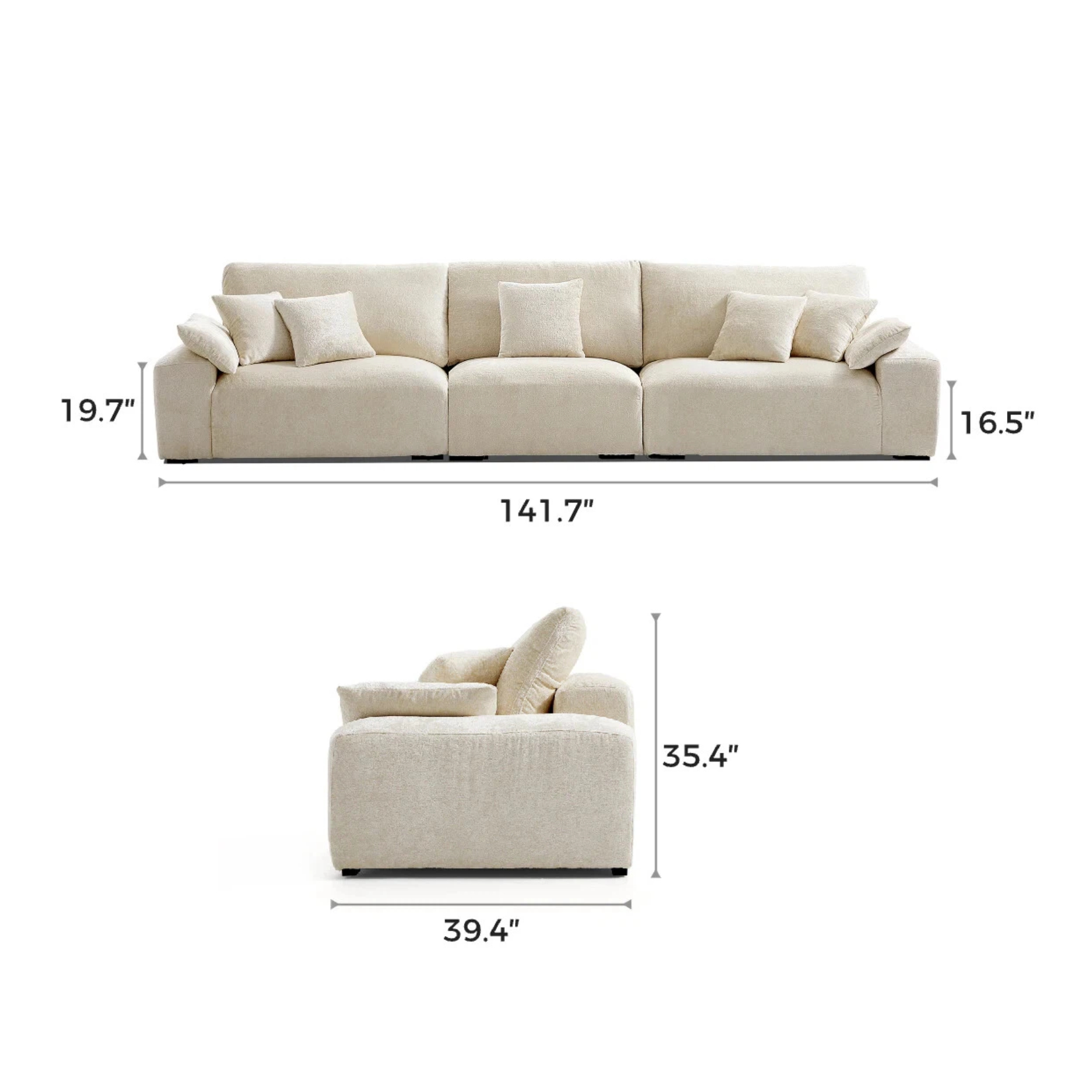 Experience the ethereal touch of our sofa—downy and pillowy, reminiscent of a bakery-fresh loaf, it rebounds with satisfying fullness at the lightest tap.