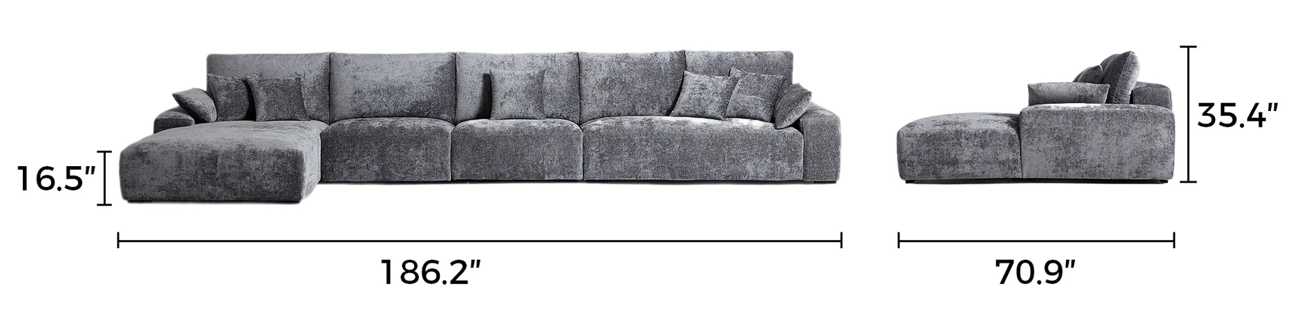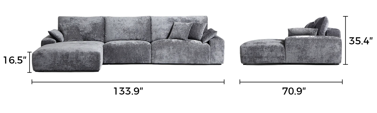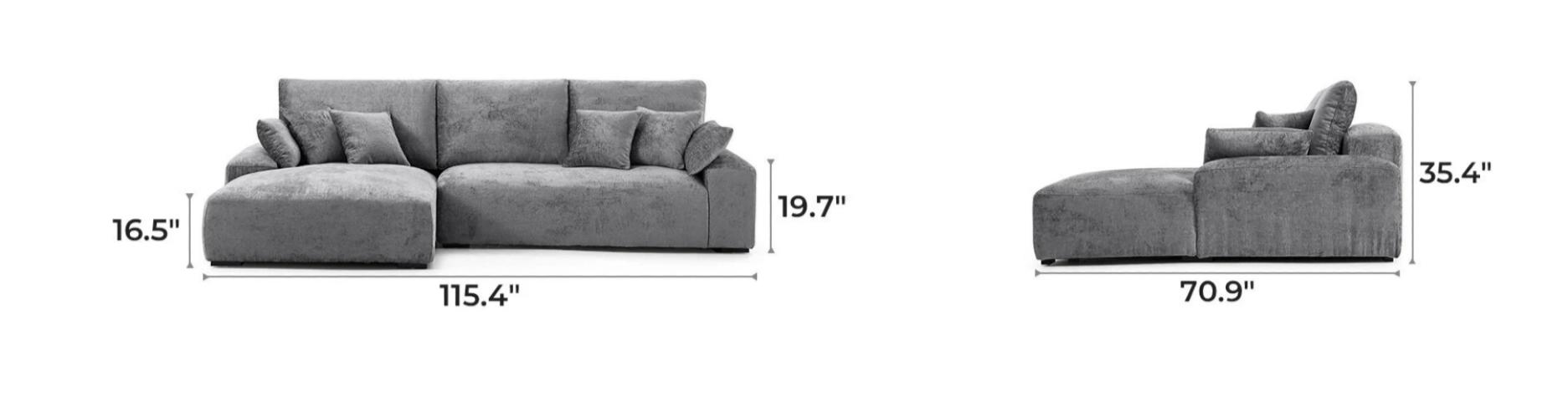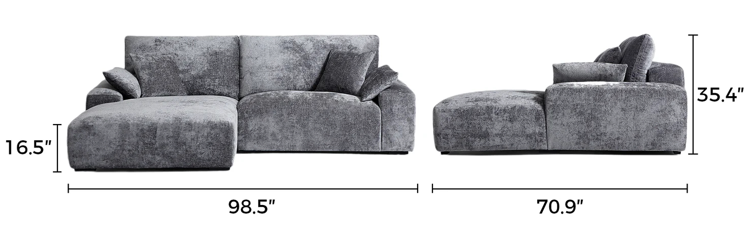 Designed for open-plan living rooms or cozy family areas, Emrepss sectional with chaise blends seamlessly into modern, minimalist, or contemporary interiors. Its sleek silhouette and textured grey fabric add a touch of sophistication, making it a perfect anchor piece for stylish, inviting spaces.