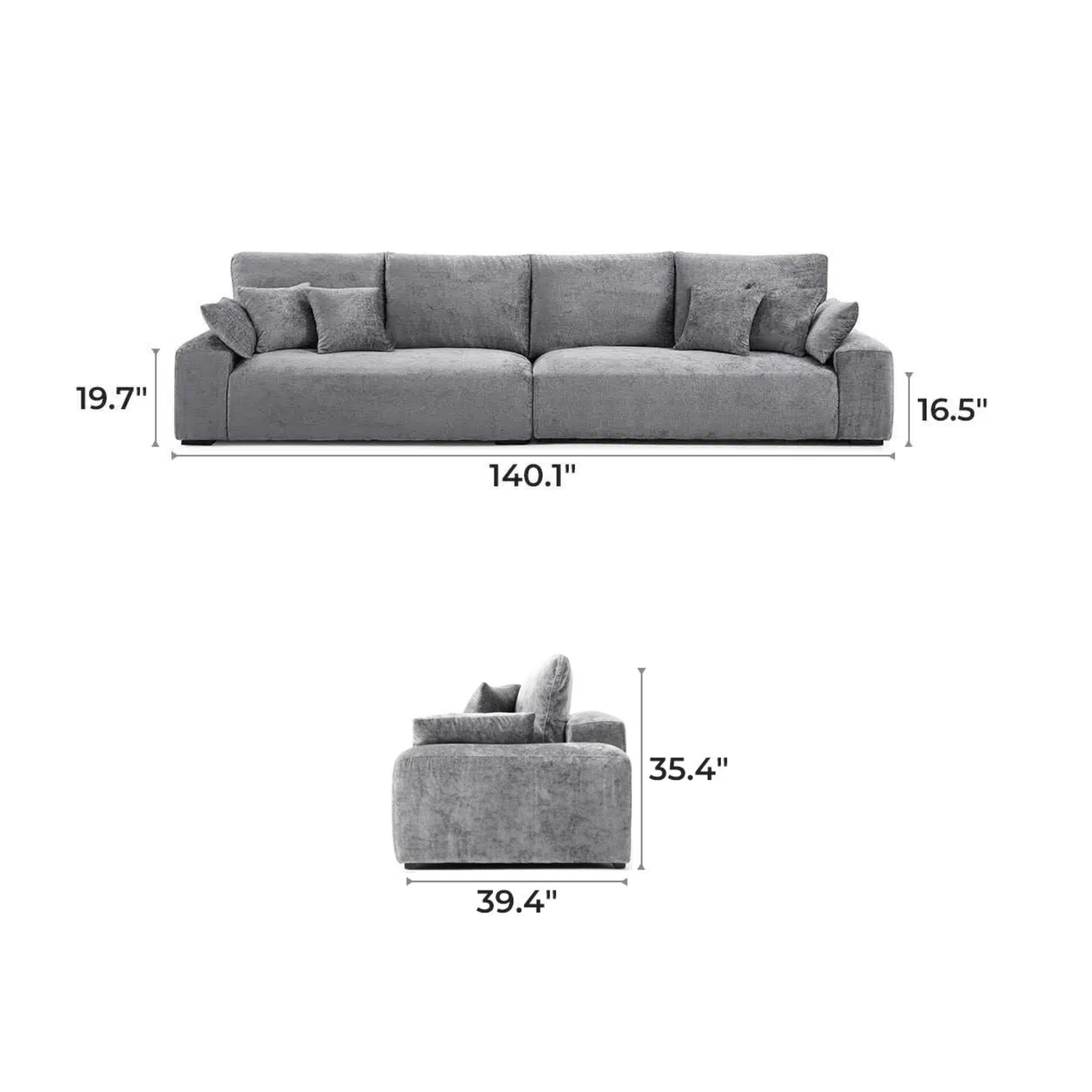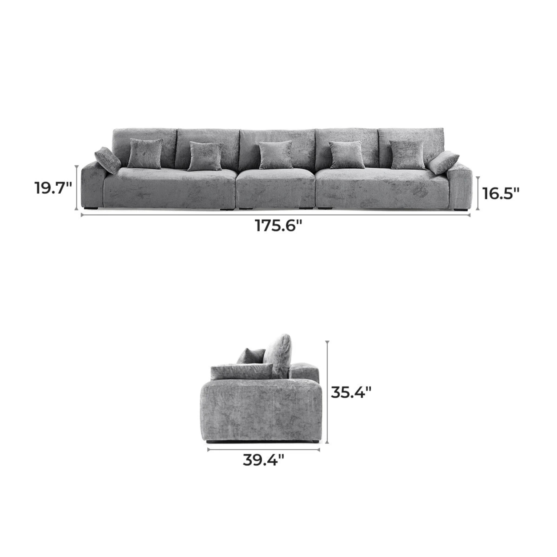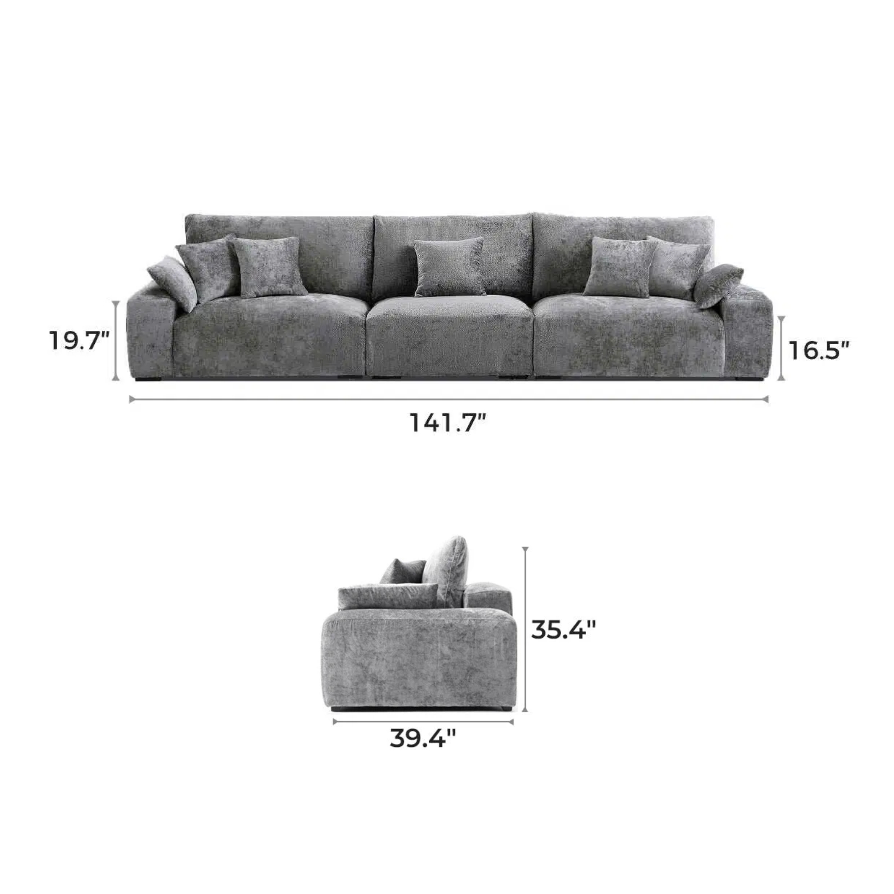 Perfect for large living rooms or open spaces, Empress sofa pairs textured grey fabric with clean lines, fitting beautifully into contemporary and minimalist interiors.