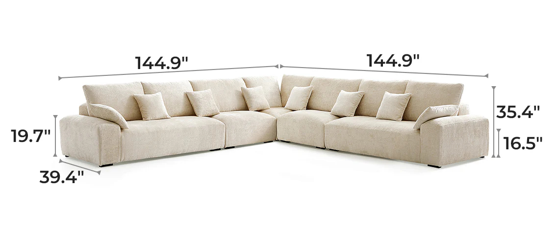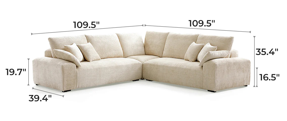 Empress Corner Sectional with a 16.5-inch seat height, designed for optimal comfort and posture support. This height minimizes strain on the lower back and knees while ensuring easy seating and standing for users of all ages and mobility levels.