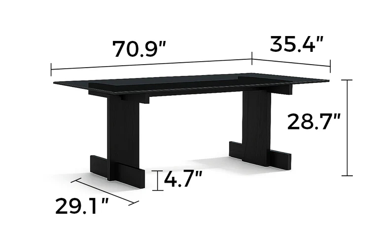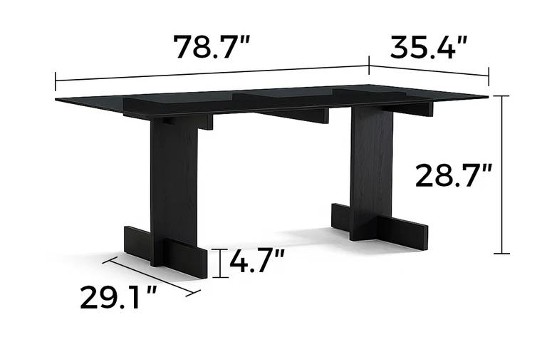 The Zayle Rectangular Dining Table combines modern glass aesthetics with traditional wood craftsmanship. Featuring a smoked gray tempered glass top and a solid wood cross-base built with mortise and tenon joinery, this contemporary dining table offers durability, stability, and timeless design. Perfect for modern dining rooms, open-concept spaces, and minimalist interiors.